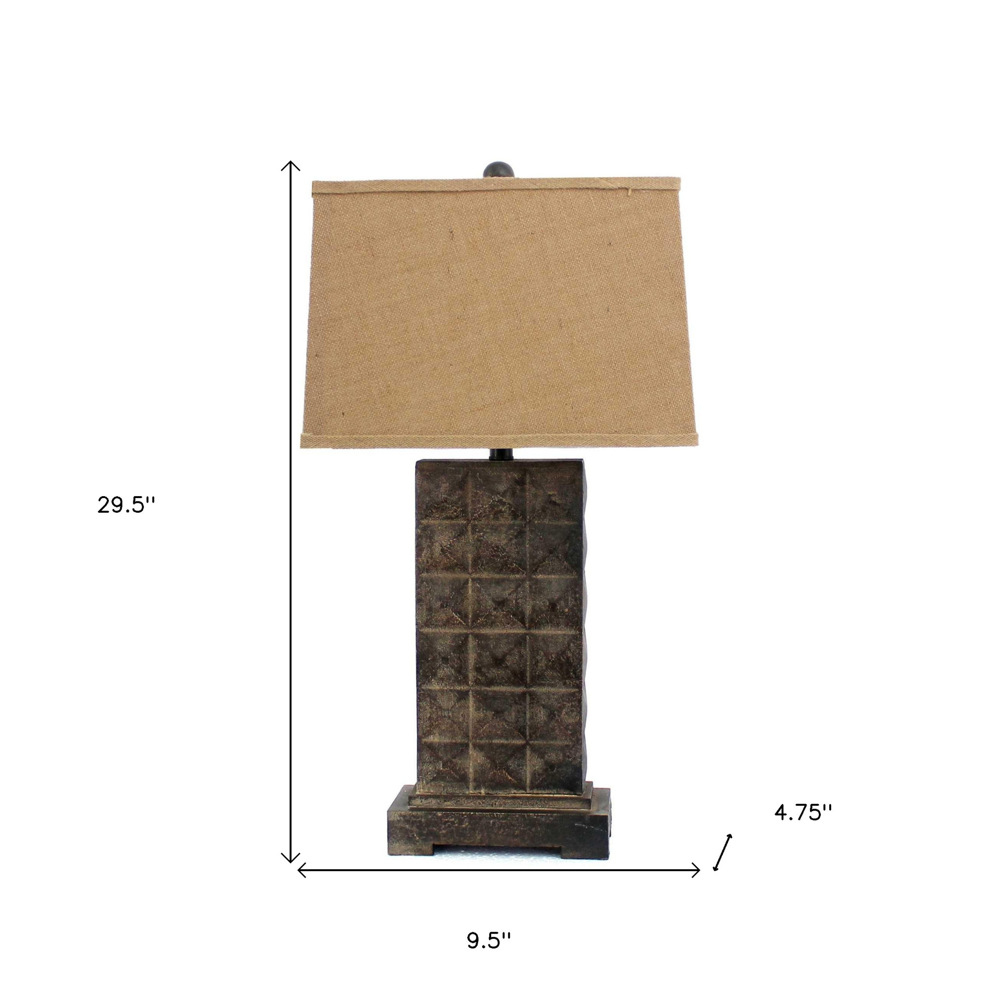Bring of level of elegance and freshness to your space with this high quality 30-inch distressed bronze metal bedside lamp with khaki shade. The lamp is made of sturdy metal and features a bronze color. Bedside table lamps help to add a soft and cozy glow to your bedroom. Great for evening reading. Use this lamp anywhere and elevate the look of the whole space. Bring some lite and good vibes into your space with this updated and stylishly designed lamp. 29.5-inch h x 9.5-inch w x 4.75-inch d.
