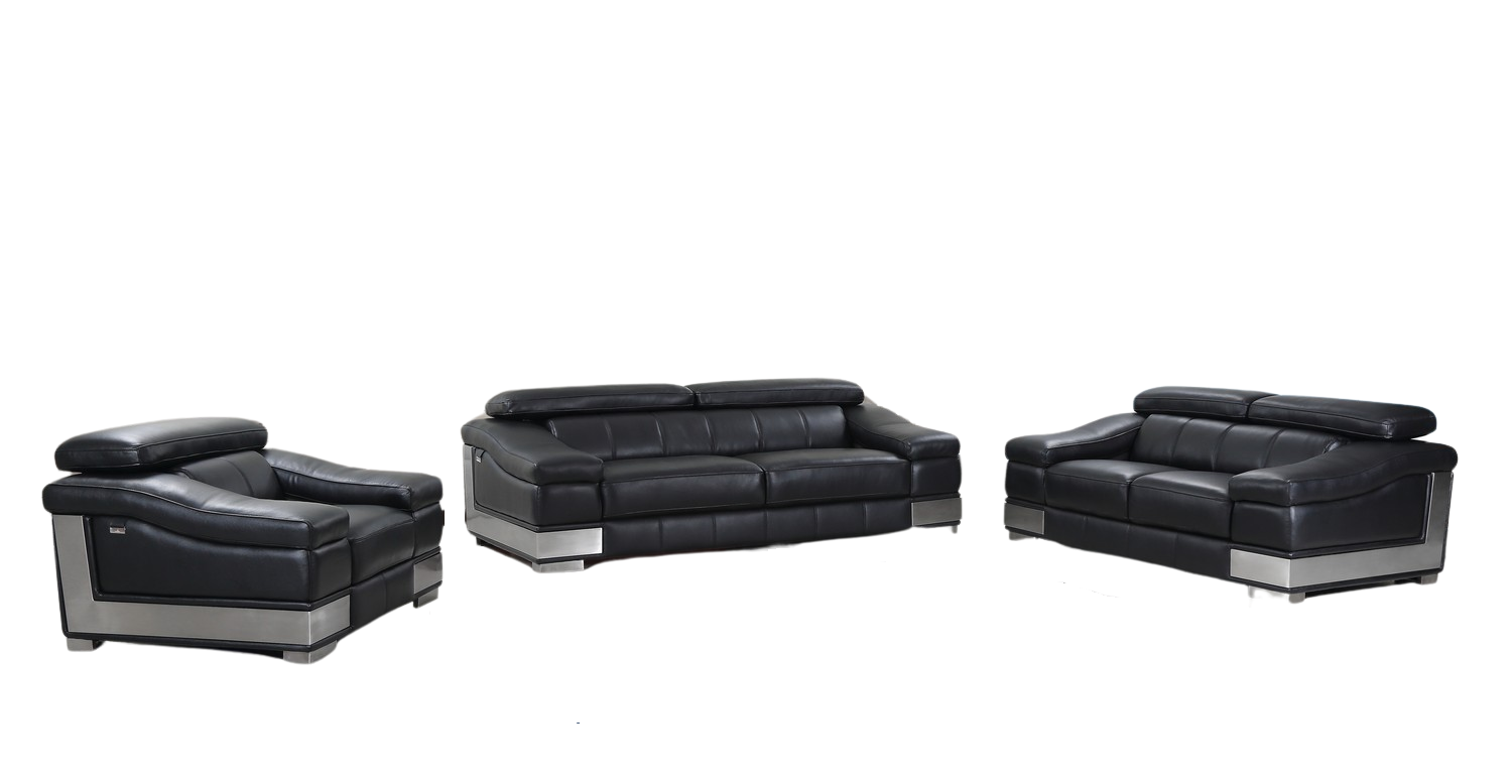 Step into a world of unparalleled seating comfort that is sure to dazzle even the toughest critic with our remarkable three piece indoor black italian leather six person seating set. Upholstered in supple and luxurious genuine leather, this set has a rich and warm appeal. The inclusion of a loveseat into your mix allows a fashionable seating option in a compact design. Gather with family and loved ones with this seating set that will bring you all together. 31-inch H x 214-inch W x 43-inch D