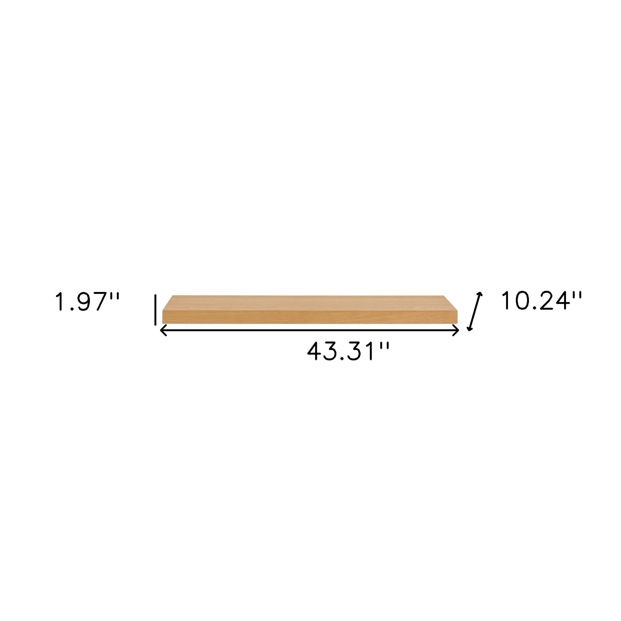 Add a touch of minimalist design combined with utility to any space in your home with this Natural Light Brown Wooden Floating Shelf. This shelf is made of manufactured wood and veneer and features a simple narrow rectangular design, that like the name implies, appears to be floating. The light brown natural oak finish on top allows the wooden grain and details to show through adding more depth to the overall look. This floating shelf is constructed in a way that makes it light weight allowing it to hang on any wall securely. You can use this shelf in your kitchen as extra storage, in your living room or bedroom as a picture shelf, or in your entryway to hold you keys, wallet, or letters. 1.97-inch h x 43.31-inch w x 10.2-inch d.