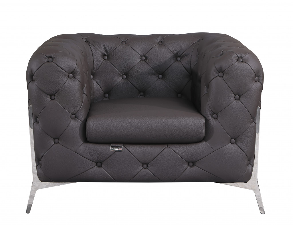 Step into a world of unparalleled seating comfort that is sure to dazzle even the toughest critic with our remarkable three piece indoor brown italian leather six person seating set. Upholstered in supple and luxurious genuine leather, this set has a rich and warm appeal. The presence of coil spring seat construction helps distribute weight evenly, reducing pressure points and enhancing overall comfort by minimizing the strain on specific areas of the body. Tufted cushioning provides a visually appealing texture and pattern on the cushions, adding a touch of elegance and sophistication to your furniture. The inclusion of a loveseat into your mix allows a fashionable seating option in a compact design. Ready to re-decorate. This set is an obvious choice to fill your space with style and class. 44-inch H x 90-inch W x 40-inch D
