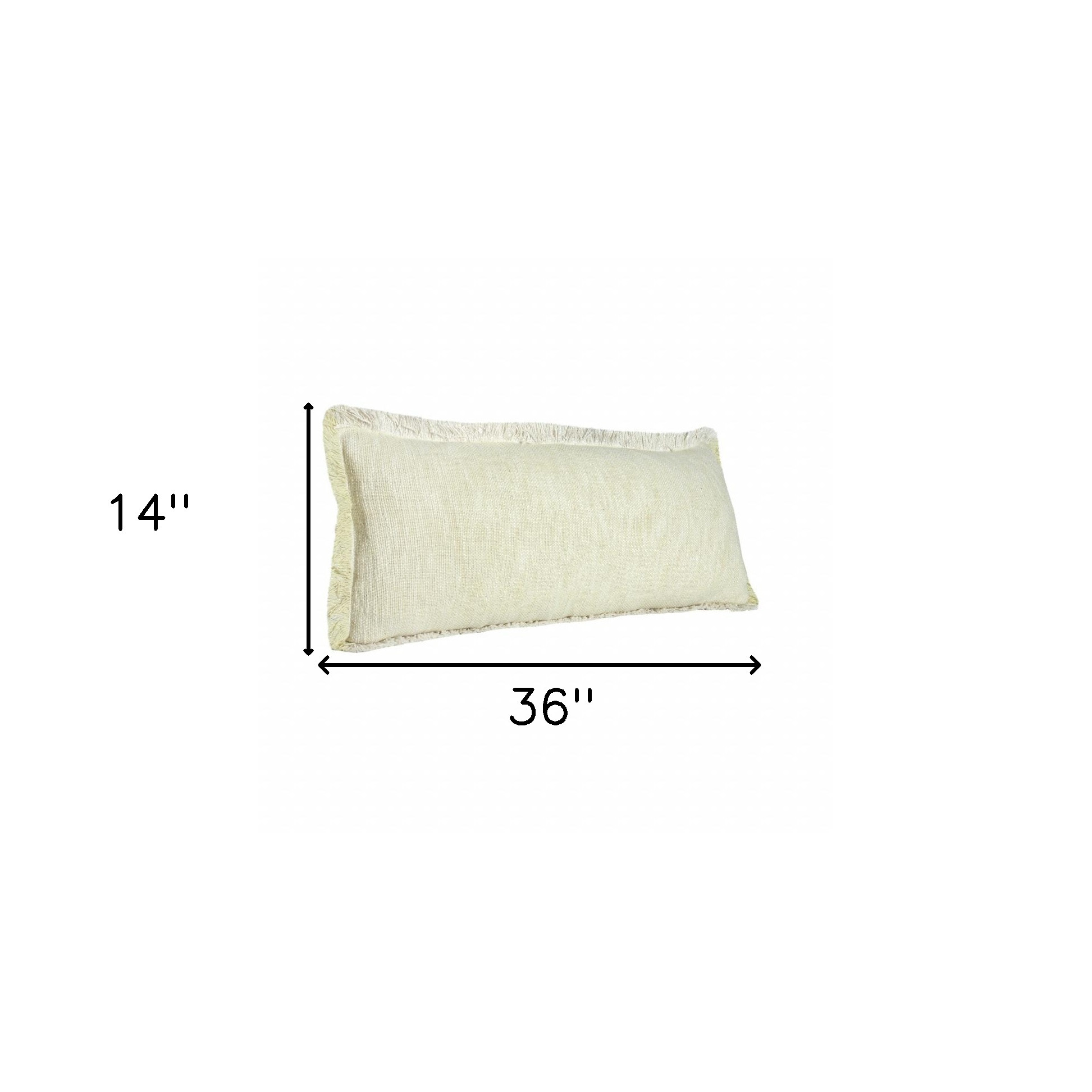 14" X 36" Light Yellow And White 100% Cotton Geometric Zippered Pillow