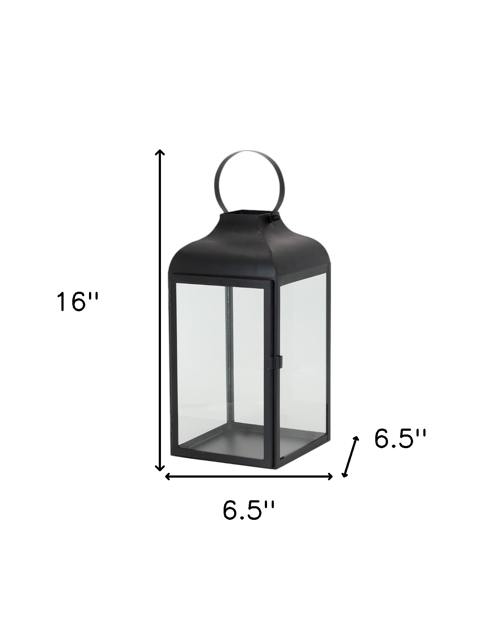 This set of two black distressed iron floor lantern candle holders adds flair, function, and visual interest to any home or special occasion. Dress up your home to impress every season with this fabulous candleholder. Candleholders are an attractive way to turn a simple candle into a piece of décor. 16-inch h x 6.5-inch w x 6.5-inch d.