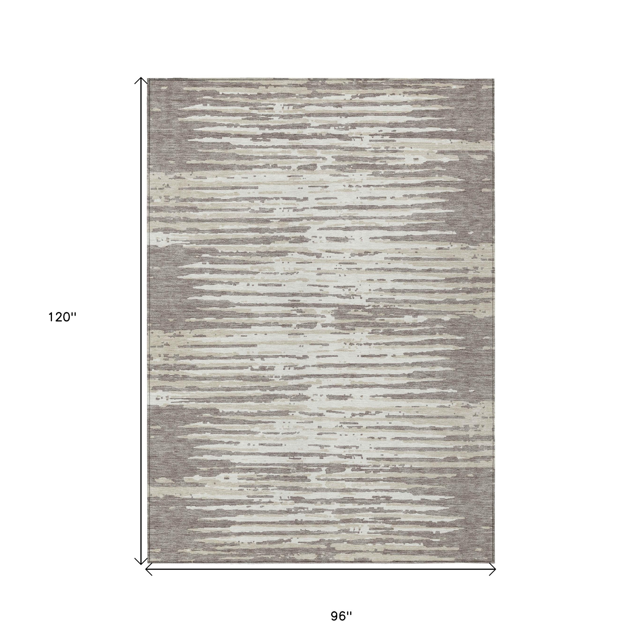 8' X 10' Taupe And Ivory Striped Washable Indoor Outdoor Area Rug